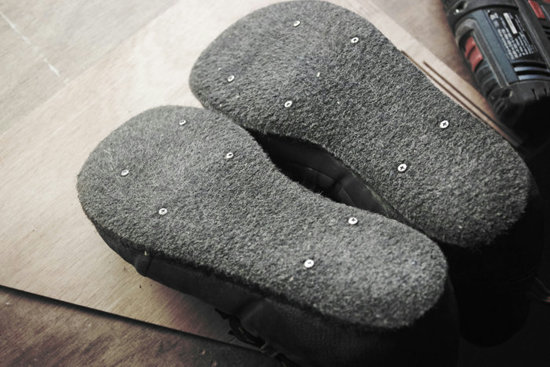 フェルト底にピンスパイクを付ける