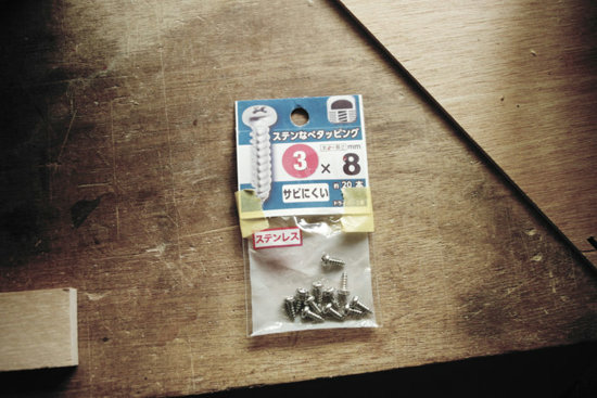 用意するのは短いステンレスのビス、エポキシ接着剤、電動ドリルです。