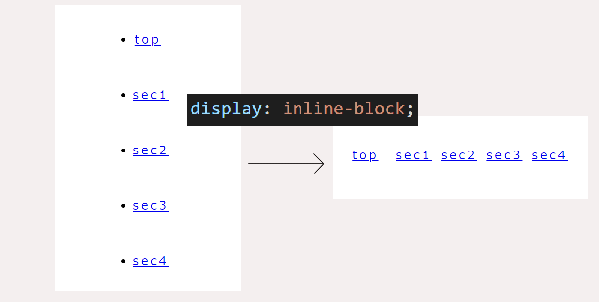 通常、メニューなどのリストでつかう<li>はブロック要素なのでかってに改行されて縦に並んでしまいます。