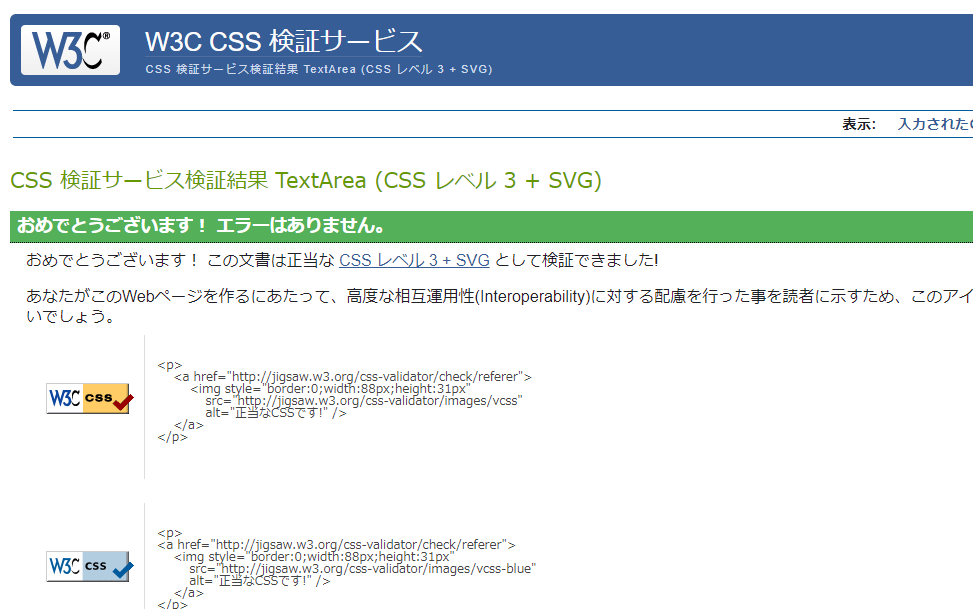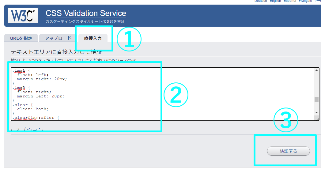 それをCSS Validation Serviceの直接入力タブに貼り付けます。