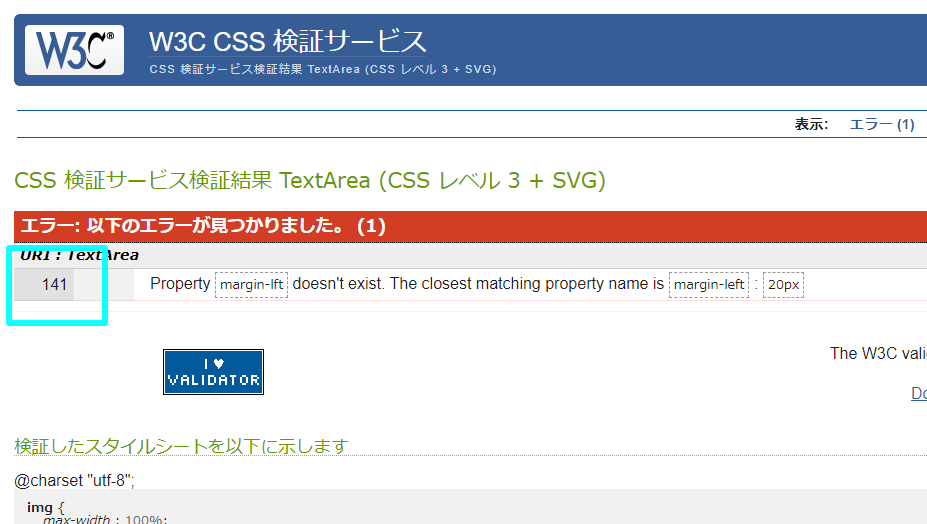 エラーがあるとその部分を表示してくれるので、直す際の参考にしてください。