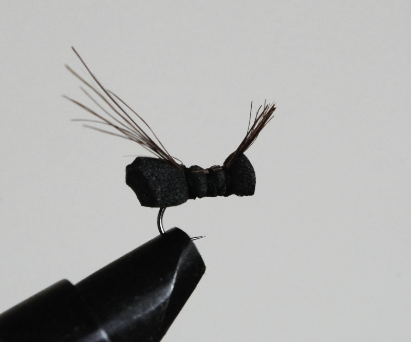 フォームを使用した水面に浮く毛ばりで、実際に水面に落ちた昆虫のような動きを流れの中で行い魚を誘います。フロータントなどは不要なので気軽にドライテンカラを楽しむことができます。北海道の野生化したレインボートラウトに実績があり、40センチ超の大物もしっかり誘いフッキングします。