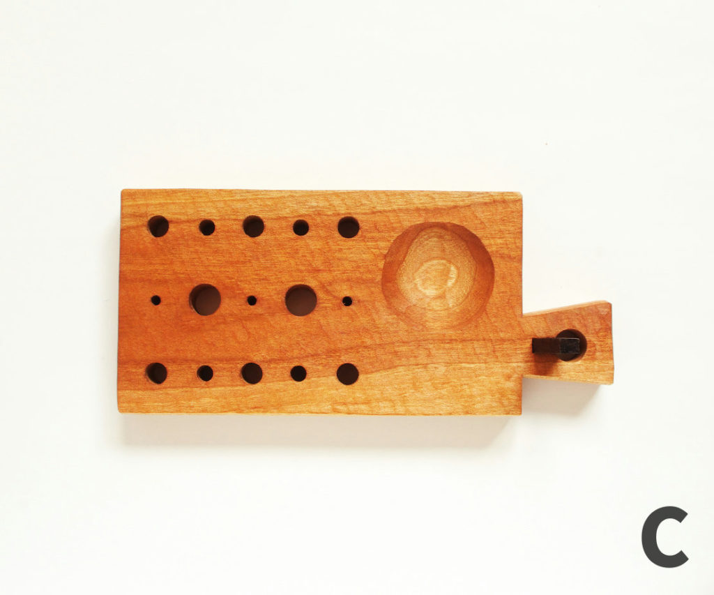 板厚は15ミリで材は桜とシャム柿(くさび)です。