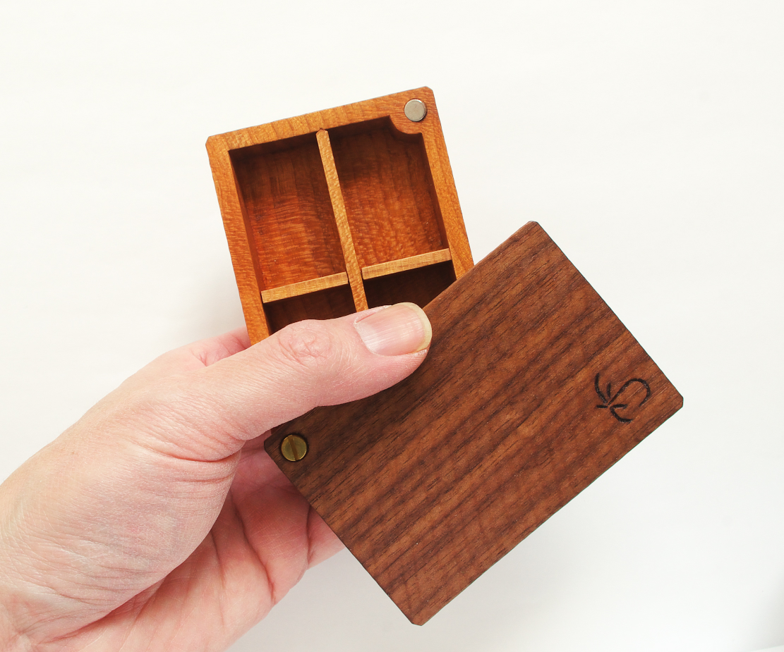 本体にはチェリー、フタにはブラックウォールナットの無垢材、共に狂いを最小限に抑える柾目を選材。