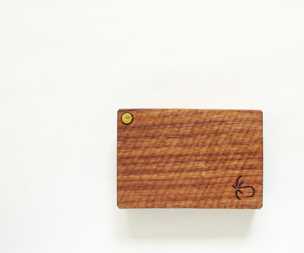回転軸には真鍮ネジを使用し、木材とともに経年変化を楽しむことができます。手に持ったときの感触、開閉時に生まれる木の擦れる音、それらもこのケースの一部です。
